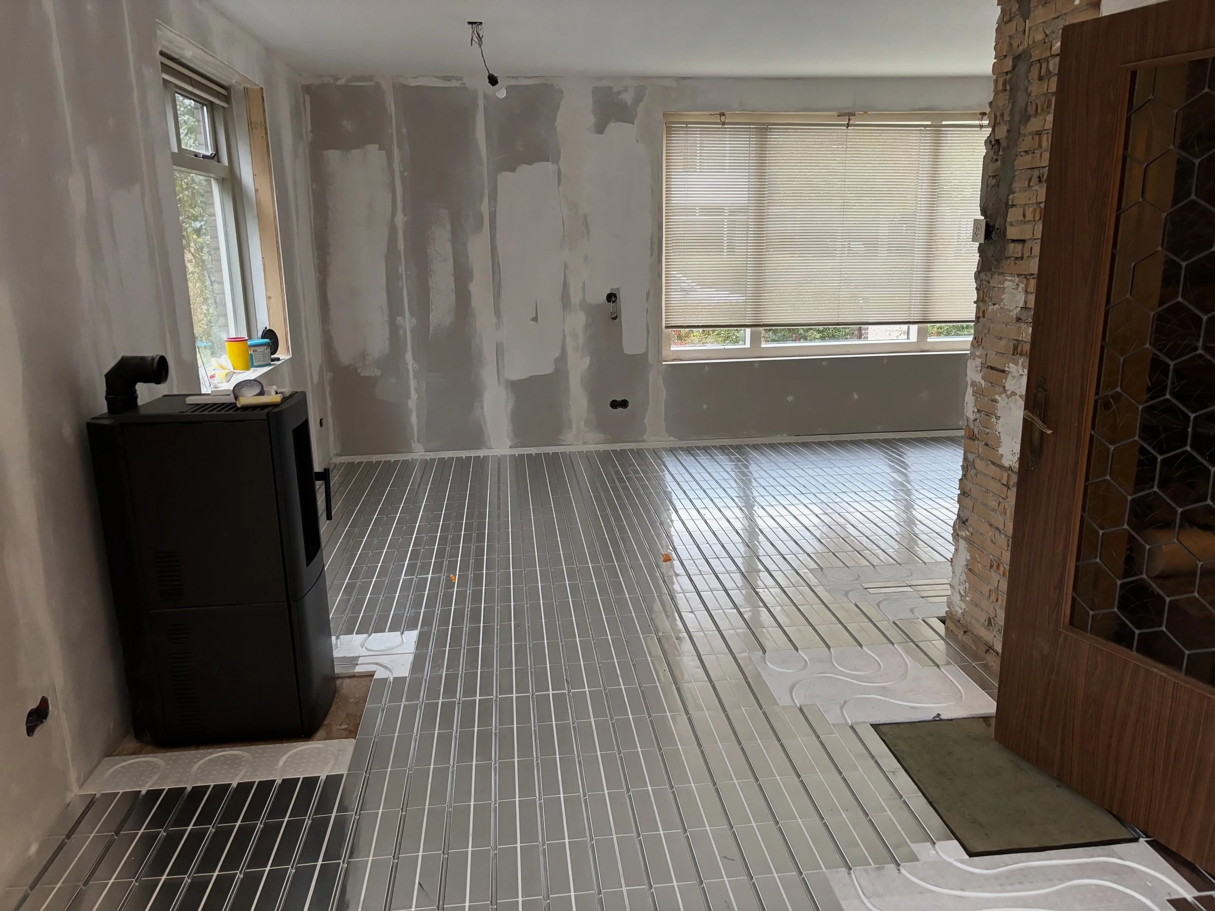 The living room is also getting more ready, and we now have heating in the floor, and the finished floor is already placed on top. Right now, we are in the middle of painting the walls in the desired colour, and the furniture for the living room is already arriving.